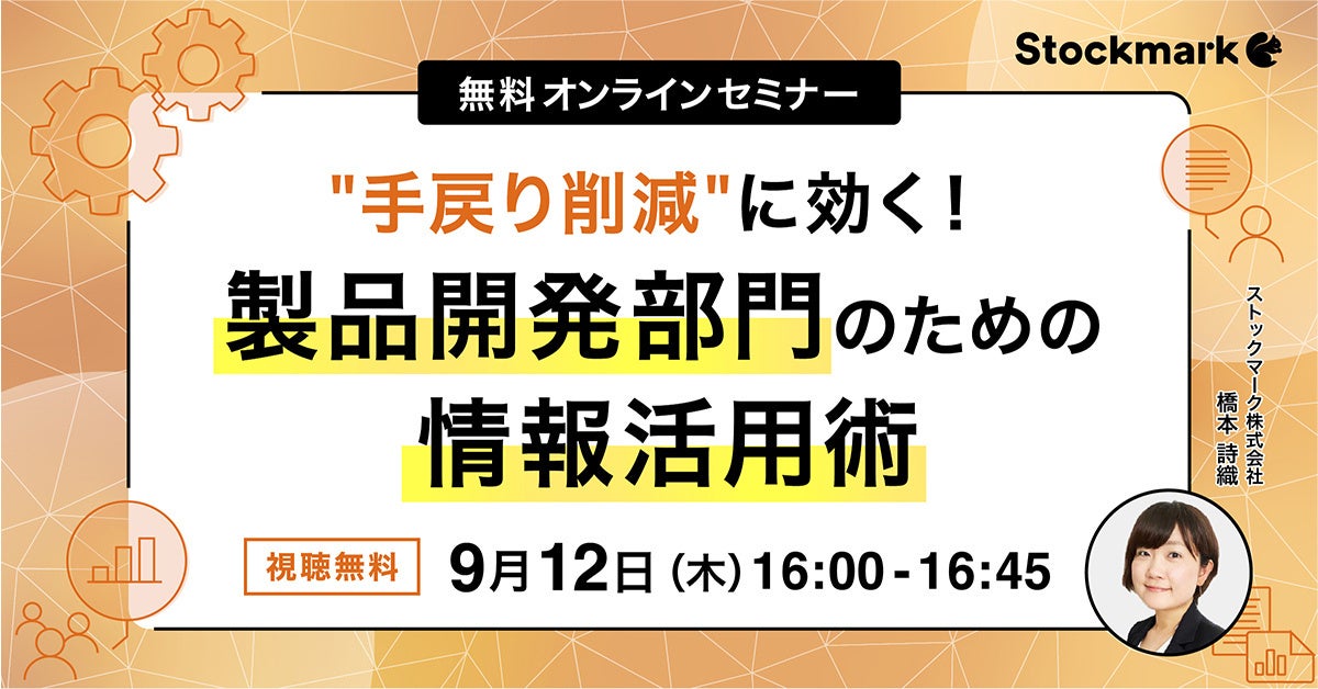 【9月12日(木) 無料セミナー】『”手戻り削減”に効く!製品開発部門のための情報活用術』を開催(ストックマーク主催)