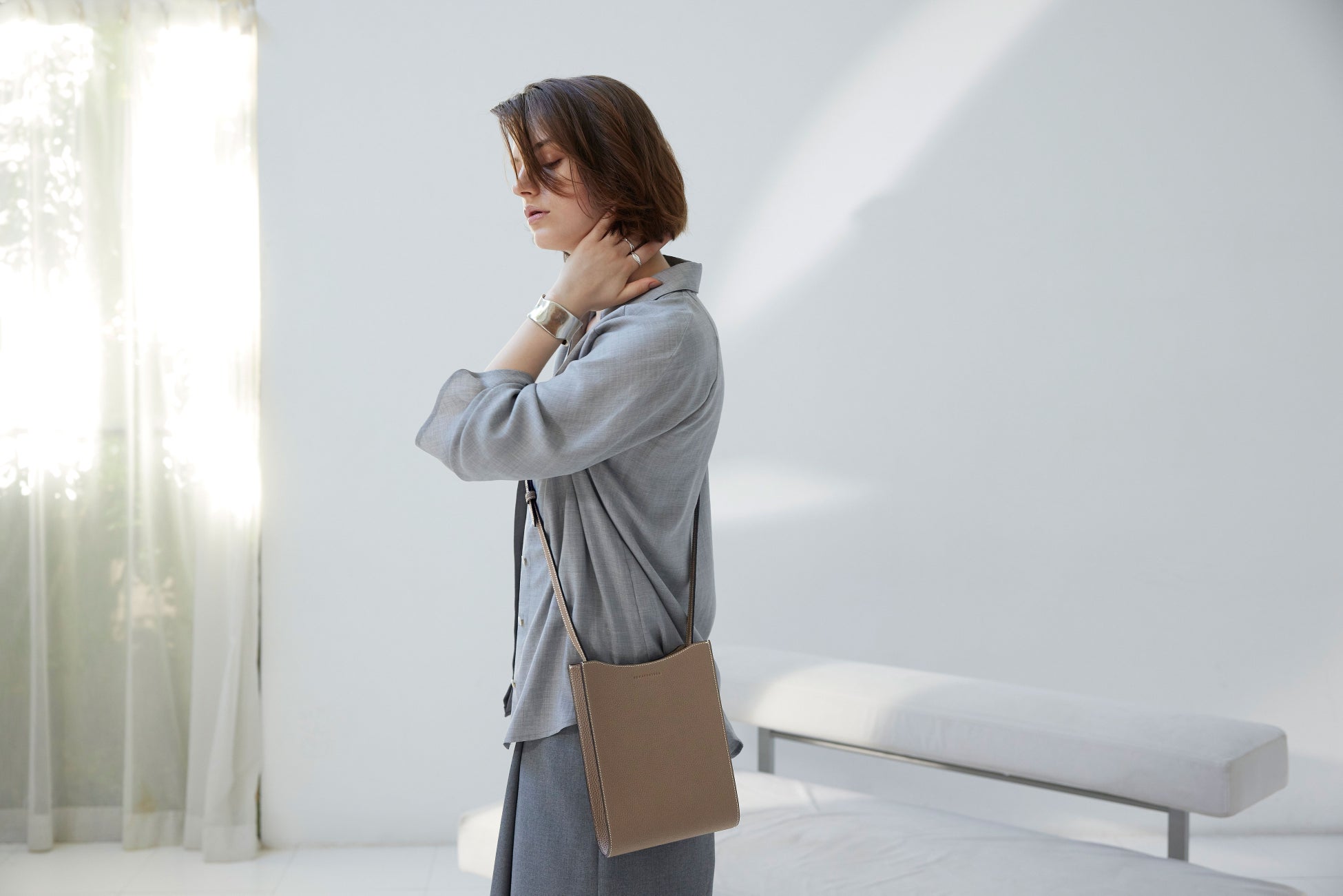 シンプルかつ上質なデザインのバッグは、軽快な装いをアップデートしてくれます。