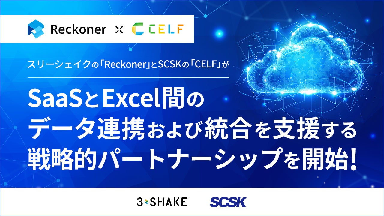 スリーシェイクの「Reckoner」とSCSKの「CELF」が、SaaSとExcel間のデータ連携および統合を支援する戦略的パートナーシップを開始