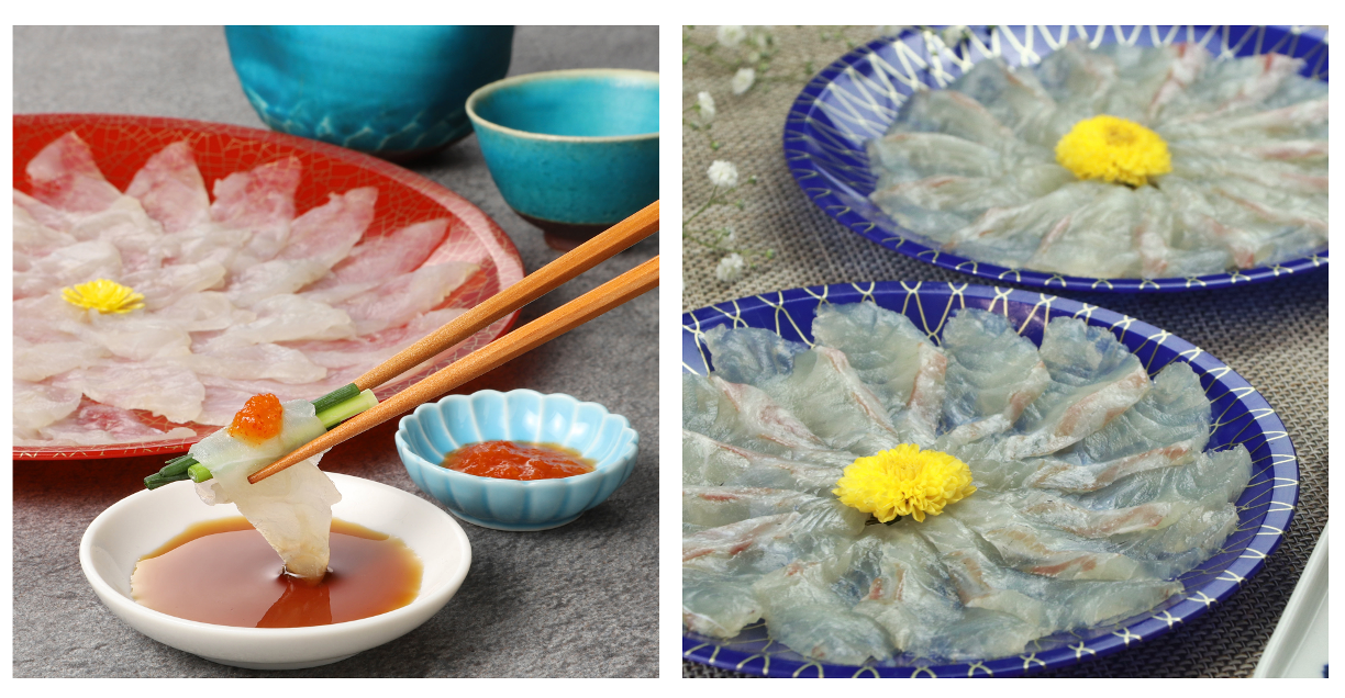 熊本県天草市の美しい離島で育てた魚は、プロの料理人にも選ばれる品質の高さ。「とらふぐの刺身・本皮」「真鯛の刺身・炙り皿」をご自宅で手軽に楽しめます。