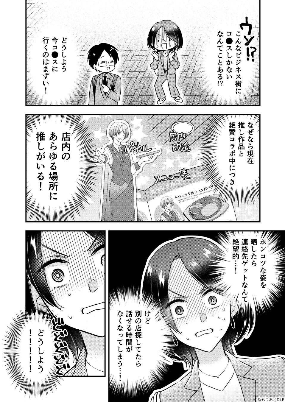 推しを見るとIQが爆下がりしポンコツになる秘密を抱えていた主人公・杏奈。このクセのせいで、これまでの恋愛はすべて失敗…。そんな彼女が現在片思いしている男性は、もうすぐ退職予定。もしかすると、今日が最後のチャンスかもしれない――!意を決して、ランチ&連絡先交換を試みるが、彼が選んだお店はまさかの推し作品とコラボ中のコ●ス!!店内のいたるところに推しが現れて、杏奈の頭の中は大混乱!「推し」か「好きな人」か――究極の選択が今、彼女に突きつけられる!?
