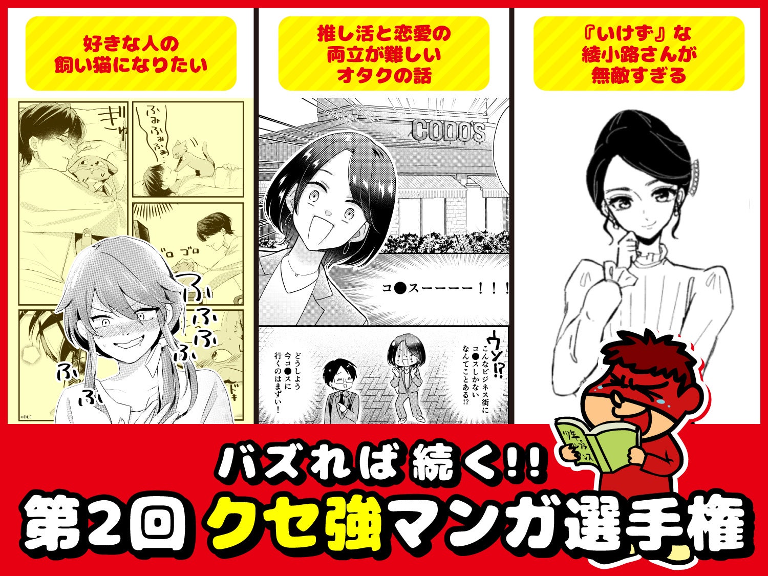 そこで、このクセが強いショートエンタメ作品を、今度はマンガ形式で制作する事で、更に多くの皆様に楽しんでいただけるよう本選手権を企画しました。選手権は参加型イベントとなっており、マンガの1話のみをSNSの「X」に投稿し、皆様の「いいねorリポスト数」が一番多い作品(かつ、いいねorリポストのどちらかが1000以上の作品)を勝者として2話以降も継続します。本選手権は合計4回実施、全部で12作品の公開を予定しています。