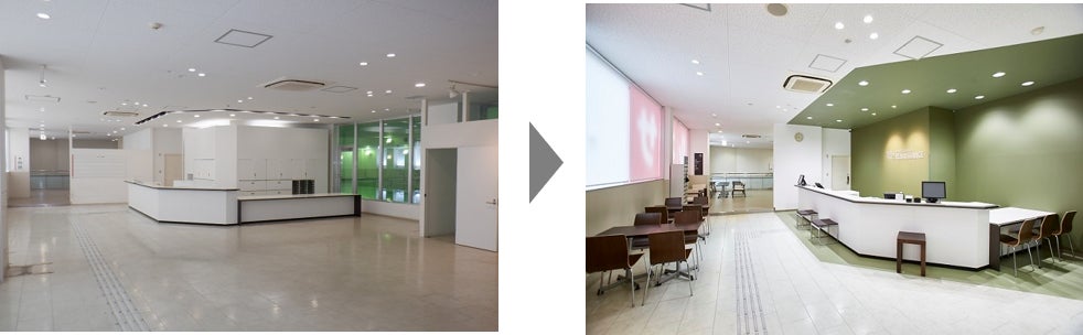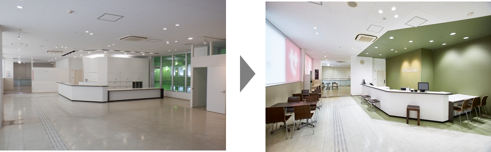 ①当初から備わっていた設備、建物の特徴を活かしながらも、利便性や居心地の良さを感じていただける施設づくりを行っています。