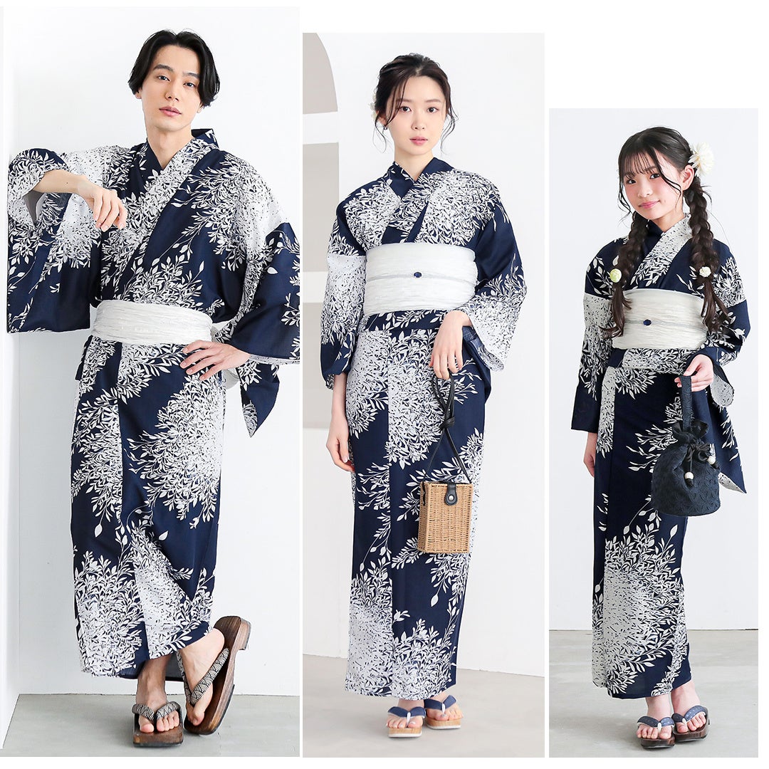 「大人用は大きく、子ども用は小さい」というお悩みを解決。女性浴衣と同じ全4柄8種の洗練されたデザイン。汗をかいてもサラッと快適でムレにくい吸水速乾素材は、お家で洗えてアイロン不要。4月下旬出荷予定。