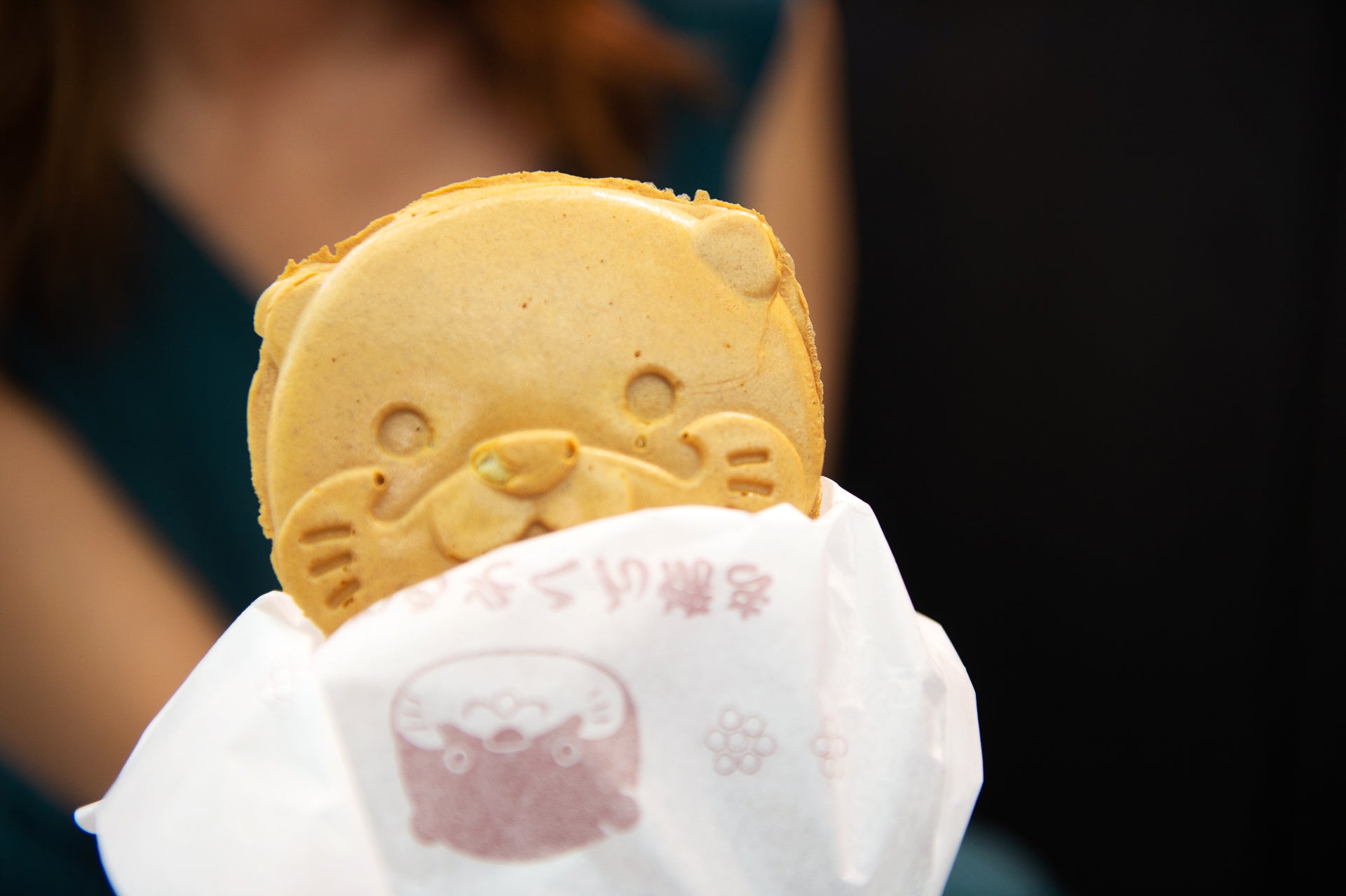 可愛くて美味しい「かわうそくん焼き」は、あんことクリームの2種類で販売中。