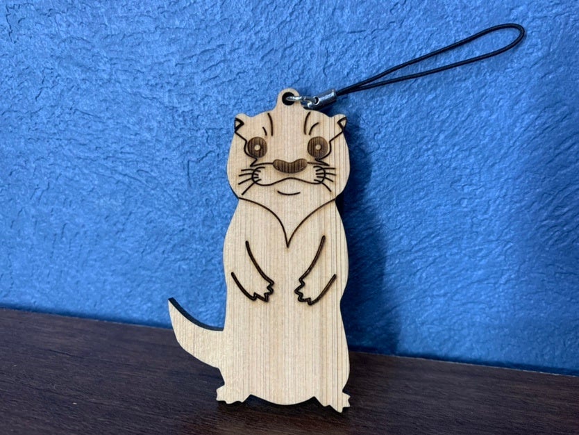 伊勢シーパラダイスのカワウソを担当する飼育スタッフがデザインし、木工職人さんが1つずつ丁寧に制作したオリジナルストラップです。