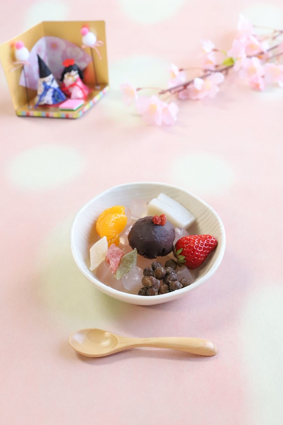 桃の節句は「桃のあんみつ」で家族団らん!おうちでひなまつり気分をお楽しみください。