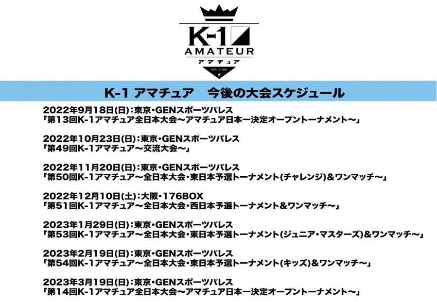 - 「K-1アマチュア」今後の大会スケジュール