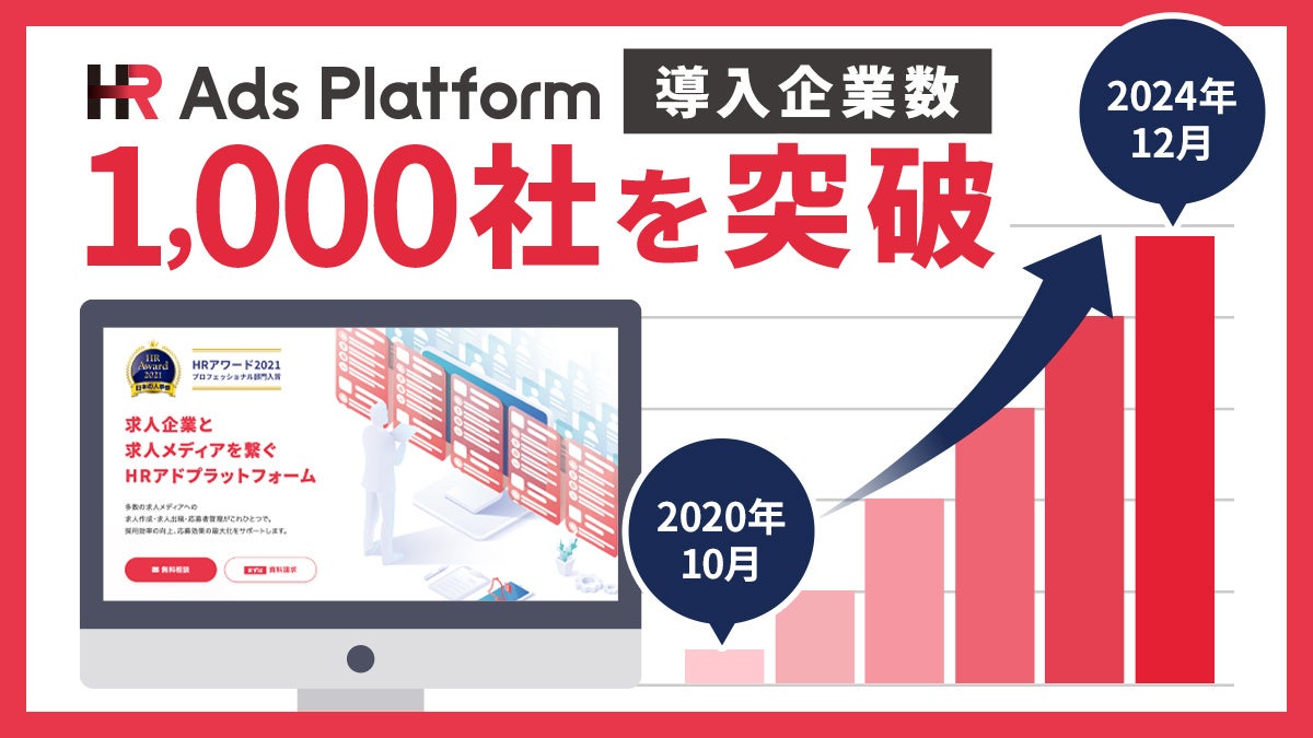 求人企業と求人メディアを繋げる運用型求人広告プラットフォーム「HR Ads Platform」導入企業数が1,000社を突破