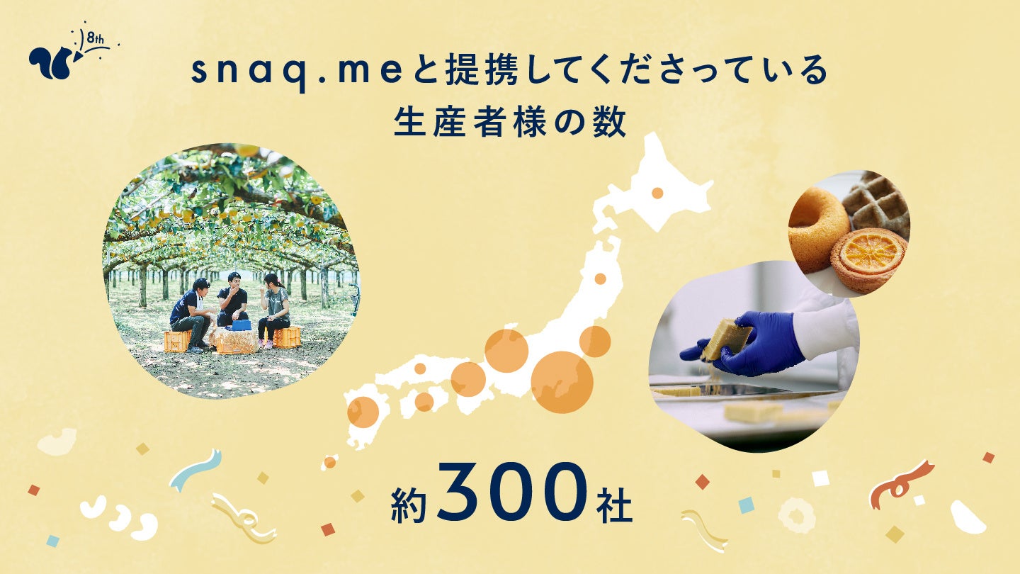 株式会社スナックミー (本社:東京都中央区 / 代表取締役:服部慎太郎)は、2024年3月におやつ体験BOX「snaq.me」の正式リリースから8周年を迎えます。8周年を記念し、「snaq.me」のこれまでがわかるデータで振り返ります。
