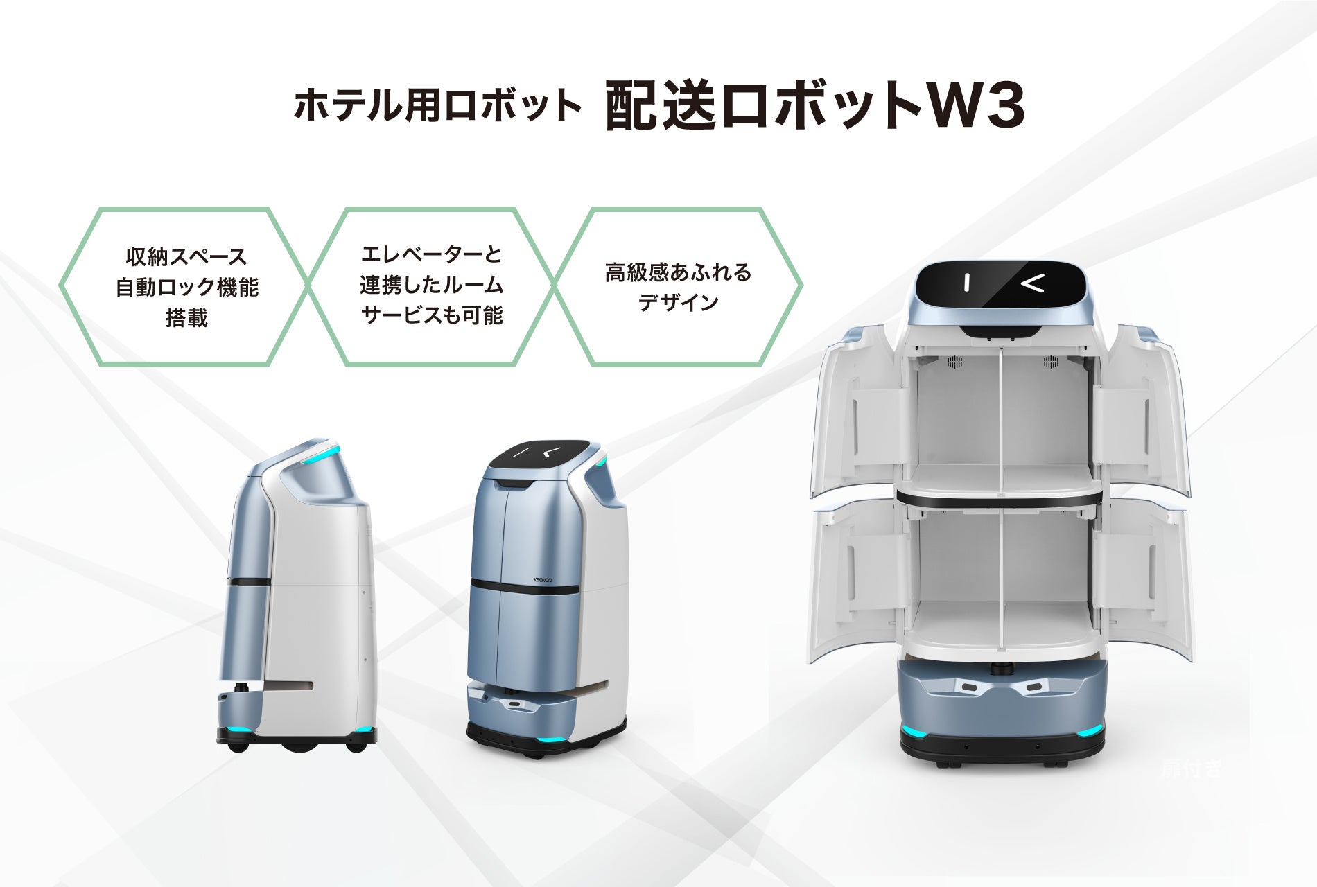 - スリム型・安定型・扉付き型 全3種類の配膳ロボットラインナップ