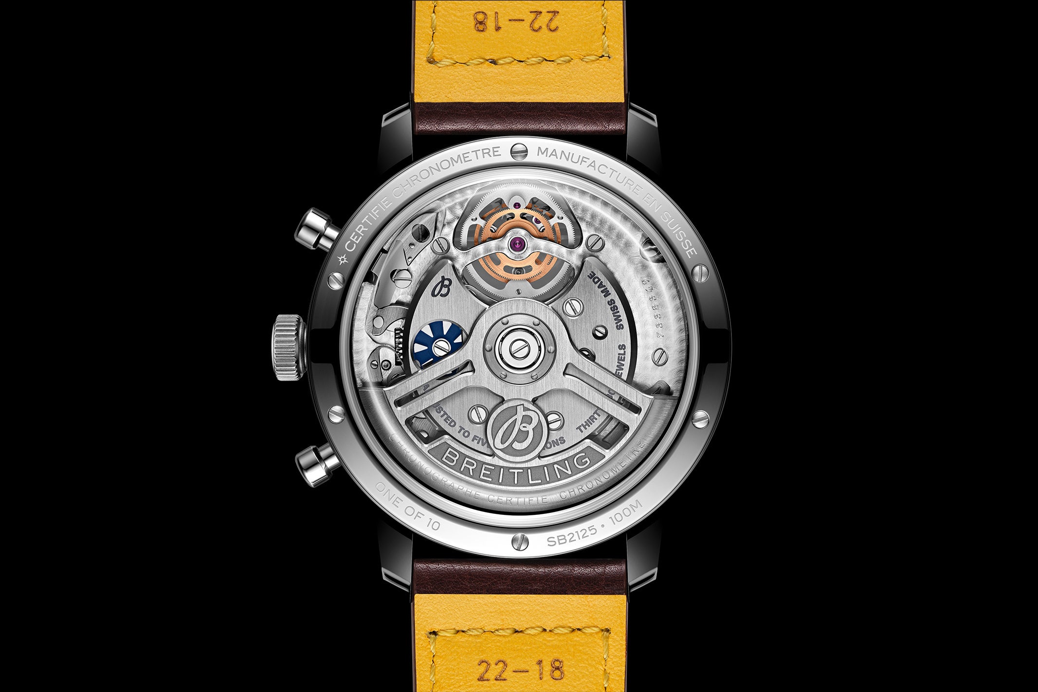トップタイム B21 は、クロノグラフ とトゥールビヨン機構を備えたキャリバーB21を搭載しています。ブライトリングは、ムーブメント専門メーカーであるマニュファクチュール・ ラ・ジュー・ペレ社と共同でこのキャリバーB21を開発しました。トゥールビヨンにクロノグラフを組み合わせることで、ブライトリングの特徴を明確に備えたハイエンド・スポーツウォッチを具現化しています。