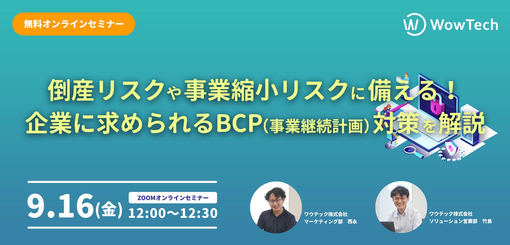 【9/16開催】倒産リスクや事業縮小リスクに備える!BCP(事業継続計画)対策ウェビナー