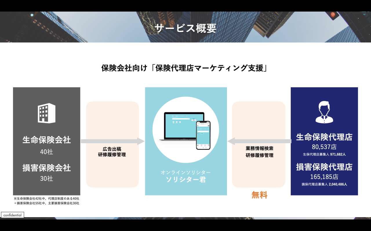 事業内容:保険プラットフォーム「ソリシター君」の開発・運営