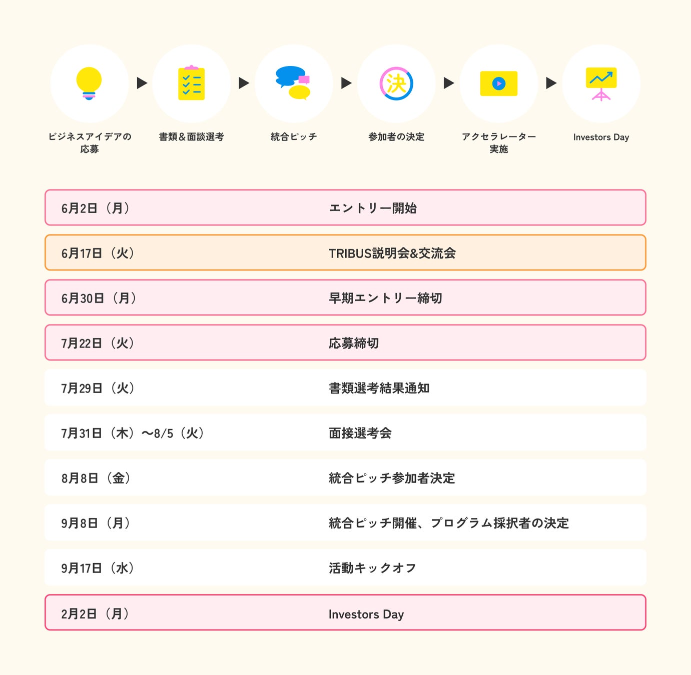 ※スケジュール/内容が一部変更になる可能性もございますので、適宜募集サイトをご確認ください。