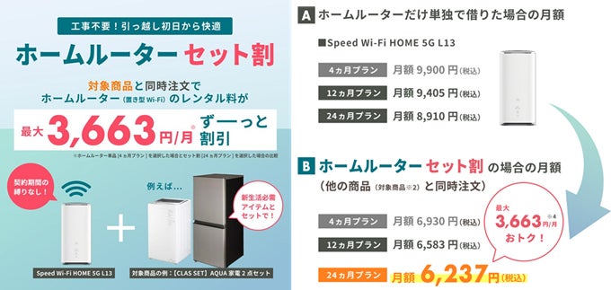 〜家具や家電とのおトクなセット割や、長期割引プランもご用意~