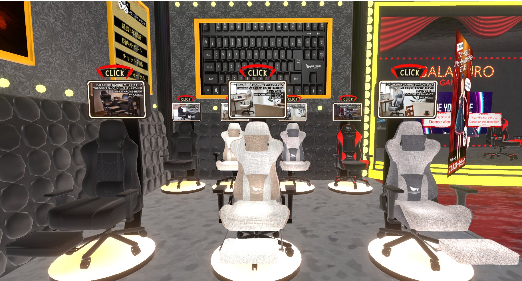 メタバース空間でリアル&3Dモデルのゲーミングチェア、新作のゲーミングキーボード、お馴染みのPCパーツなどの購入が可能に