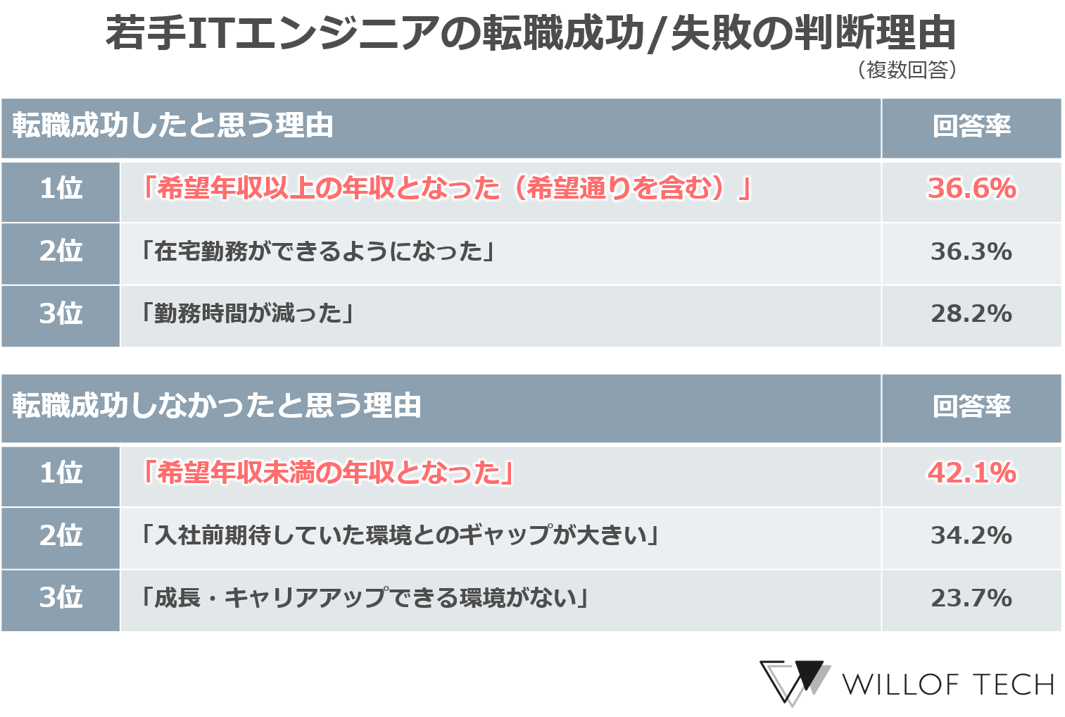 - 若手ITエンジニアの転職成功率は87.3%!成功/失敗した人どちらも「年収」が要因の1位に
