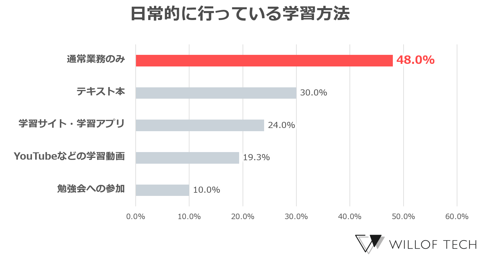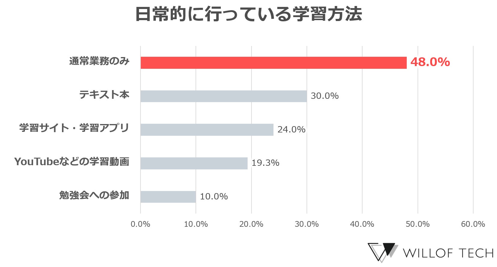 - 日常的な学習方法は「通常業務のみ」が48.0%