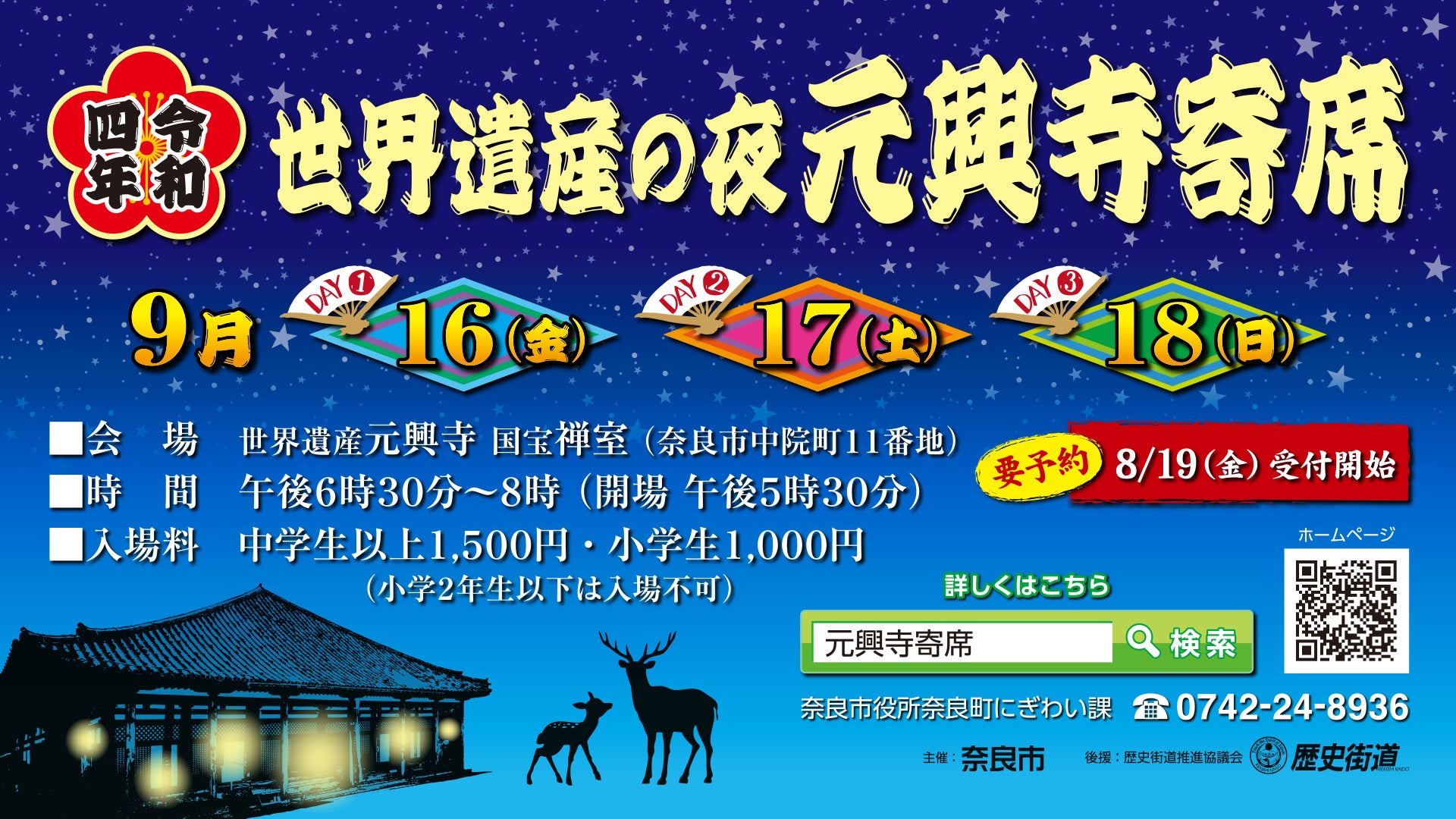 ならまちの夜の魅力を発信!「世界遺産の夜 元興寺寄席」開催