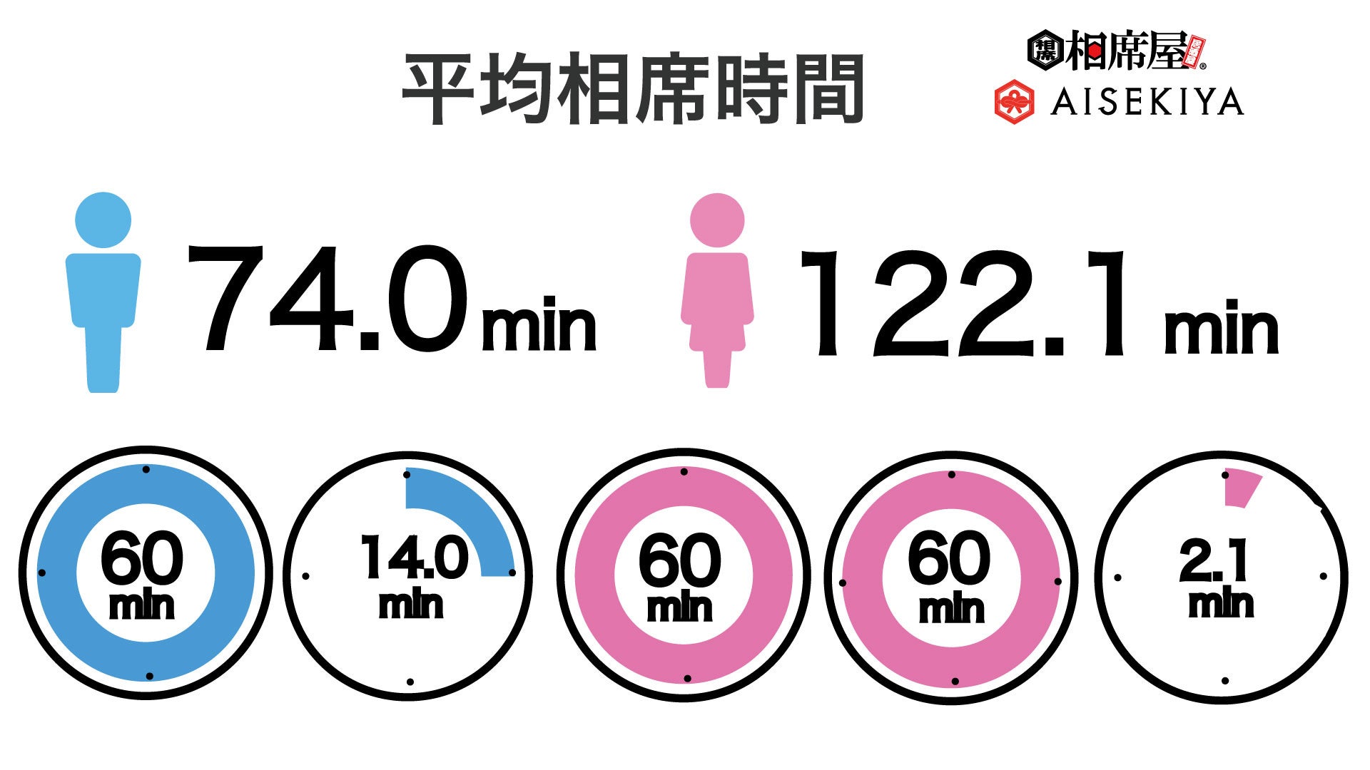2023年8月の相席屋平均相席時間は男性は74.0分、女性は 122.1分となりました。