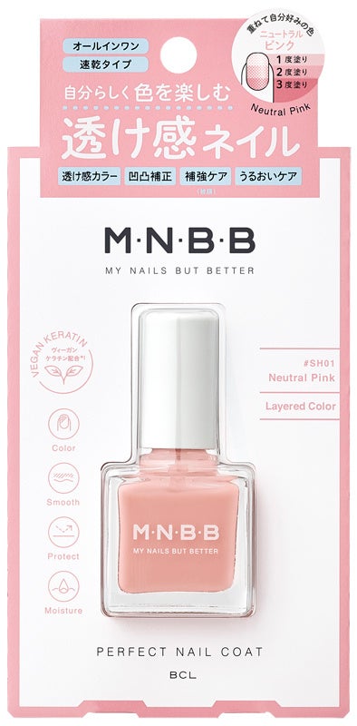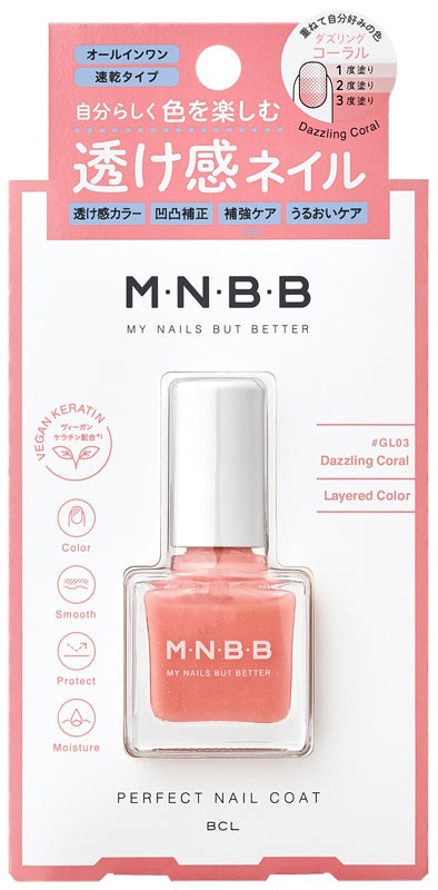 自分好みの色を楽しめる、ジェンダーレスピンクの透け感ネイル。ネイルシリーズ『M・N・B・B』から、新2種のオールインワンネイルコートが発売。