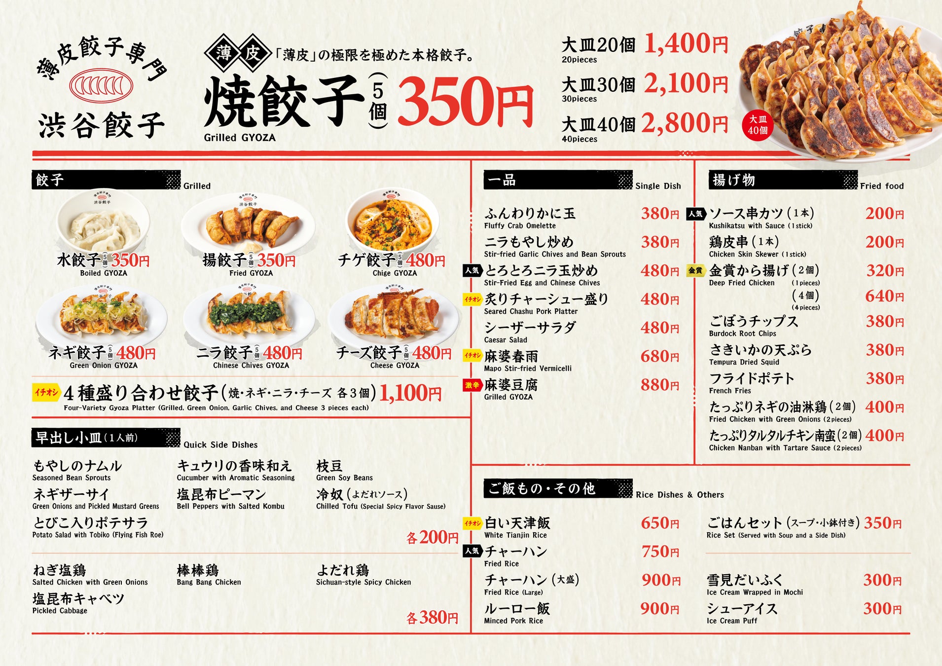 新しくなった渋谷餃子のメニューをぜひお楽しみください!