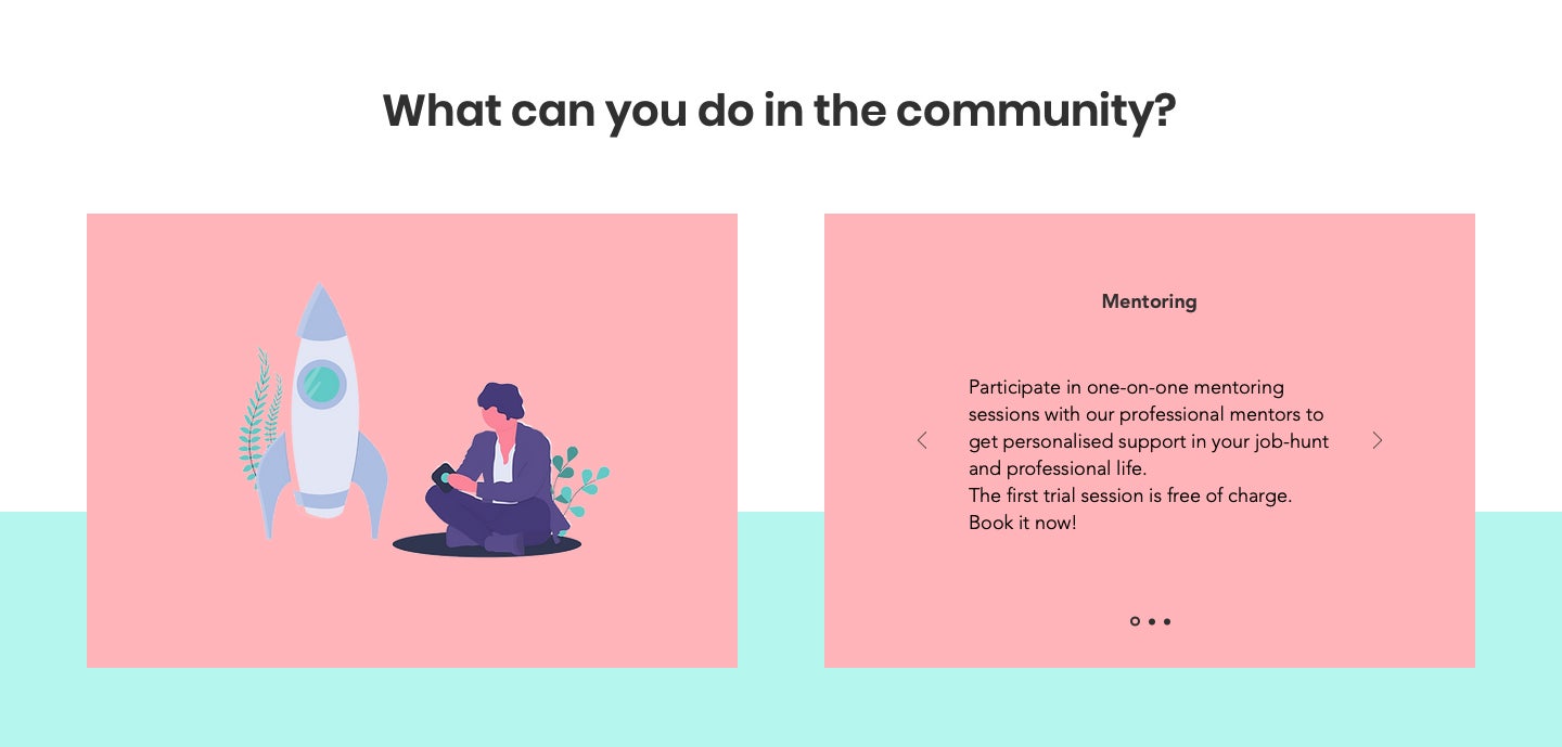 プロのメンターとの1対1のメンタリングセッションに参加して、就職活動や仕事上での個人的なサポートを受けることができます。