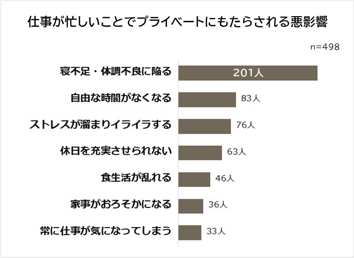 続いて「仕事が忙しいことでプライベートにもたらされる悪影響」を聞きました。