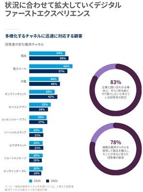顧客エンゲージメントにおいては、依然としてデジタルチャネルが重要な役割を果たしていますが、新型ウイルスに関する規制が緩和されるにつれ、従来のエンゲージメント方法から新しいエンゲージメント方法へと移行していくことが重要になります。回答者の73% が、「一人ひとりのニーズや期待を企業に理解してほしい」と考えています。
