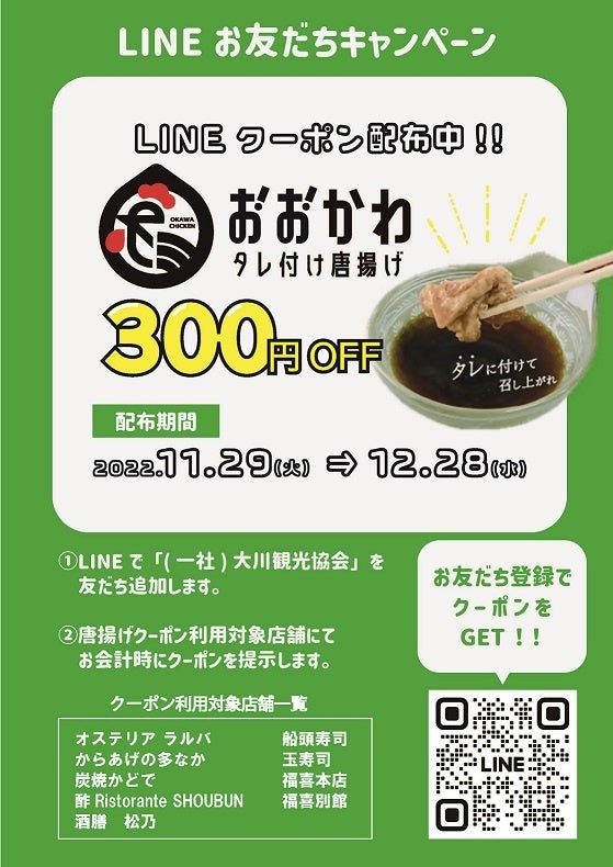 大川タレ付け唐揚げ LINEクーポン割引キャンペーン
