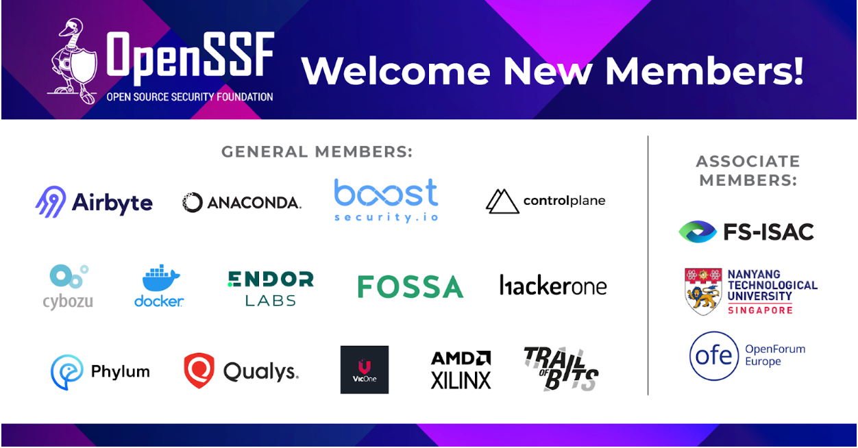 新ゼネラルメンバーには、Airbyte、Anaconda、Boostsecurity、ControlPlane、Cybozu、Docker、Endor Labs、FOSSA、HackerOne、Phylum、Qualys、Trail of Bits、VicOne、AMD Xilinx、新アソシエイトメンバーには、FS-ISAC、OpenForum Europe、Nanyang Technological Universityが含まれます。