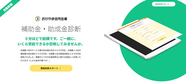 株式会社ライトアップ(本社:東京都渋谷区、代表取締役社長:白石崇、以下ライトアップ)は、おかやま信用金庫(本社:岡山県岡山市、理事長:桑田 真治、以下おかやま信用金庫)と業務提携契約を締結し、ライトアップが提供する補助金・助成金自動診断システム「Jシステム」のOEM提供を開始いたしました。Jシステムの活用により、おかやま信用金庫の取引先に、オンライン上でいち早く公的支援制度(補助金・助成金)の情報提供を行うことが可能となります。また、申請希望者はオンライン上で申請手続きのサポートを受けることが可能となります。