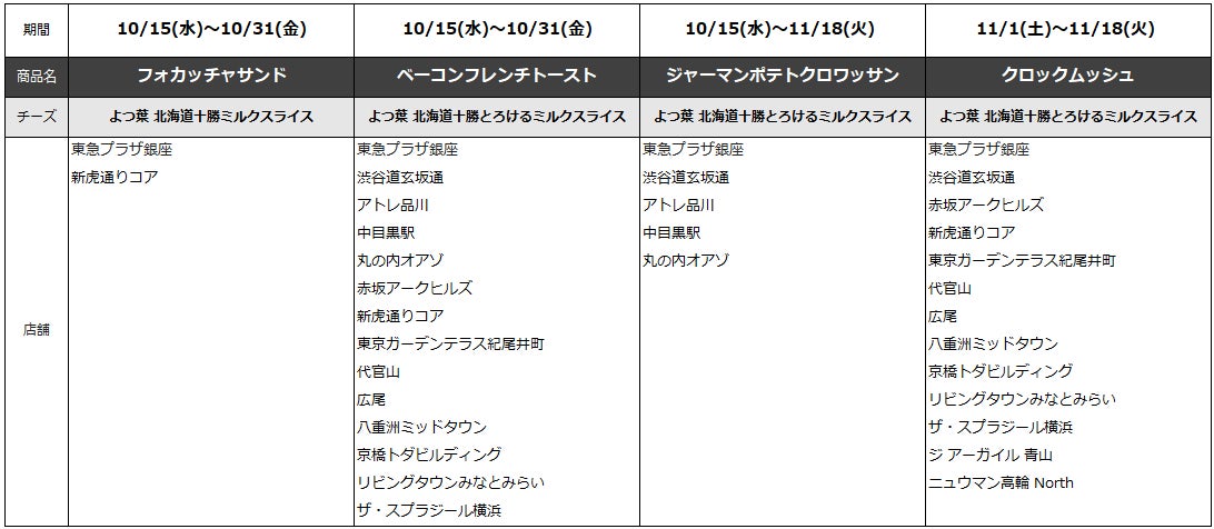 THE CITY BAKERYの「食事パン」は、各地のベーカーたちが粉を選び、その日の気温や湿度に合わせて酵母や水の配合を調整、丁寧に焼き上げています。そして、この食事パンの生地は THE CITY BAKERY で人気のペイストリーにもベースとして使われています。確かな技術を持つ職人が材料と製法にこだわり、作り上げた「食事パン」と、素材にまっすぐに向き合った「よつ葉 北海道十勝ミルクスライス」シリーズを使い、毎日の食卓に寄り添うチーズ&パンアレンジレシピを考案しました。お馴染みの「食事パン」の新たな美味しさを、ぜひ発見してみてください!