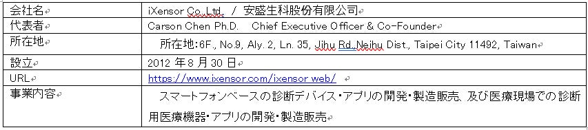 検査薬事業の拡大と新規診断ビジネス展開の推進 台湾のモバイルヘルス企業iXensor(アイセンサー)へ出資