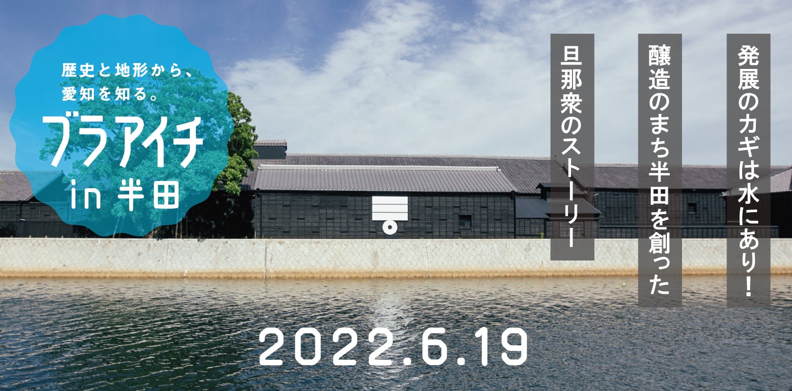 このイベントは、まちの成り立ちや過去の災害や地形を知ることで、 「まちづくり意識」や「防災意識」の向上、さらには、地域の魅力を発信することで「観光」の促進にも役立てることを目的としています。新型コロナウイルス感染拡大の影響により開催を延期しておりましたが今回約一年越しに開催が決定いたしました。醸造のまち半田ができるまでには、様々な苦悩がありました。地形を感じながら、醸造のまち半田を創った「水」の歴史を紐解き、半田の魅力を伝えるイベントです。