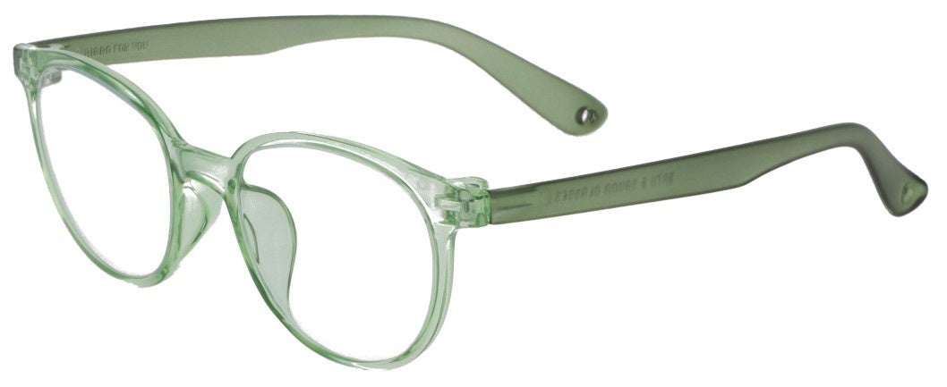 レンズシェイプは優しいボストンタイプで天地幅も広く、快適な視界を確保できます。また、フレームデザインは掛けやすいユニセックスデザインとなっています。