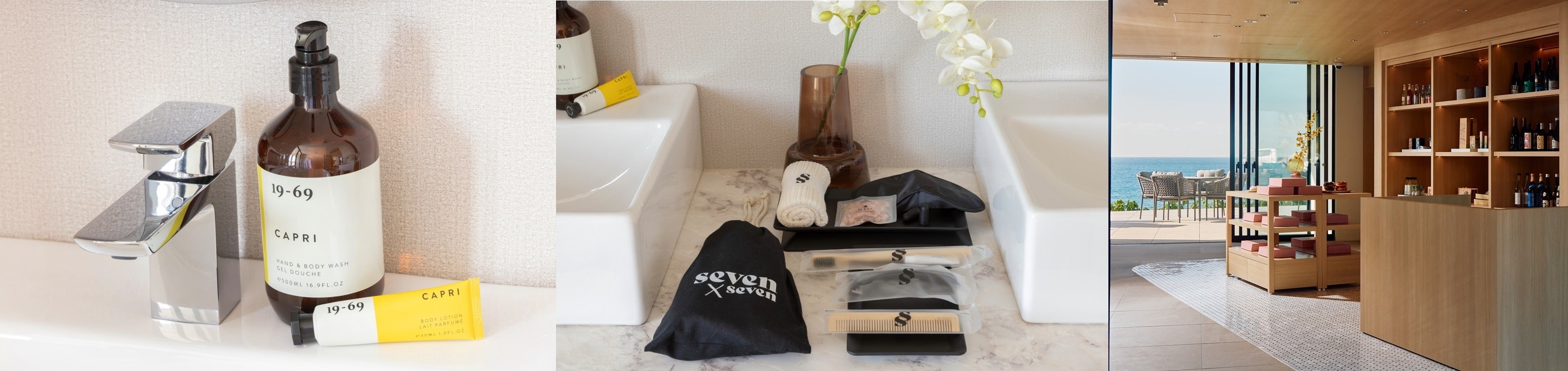 アメニティには、スウェーデン人アーティストが手掛けるフレグランスブランド「19-69」のハンドソープやシャンプー、ジャグジーで楽しめるバスソルトや、ビーチにも持ち運べるオリジナルポーチ、複数人で宿泊した際にも睡眠の質を高められる耳栓やアイマスクなどもラインナップしています。