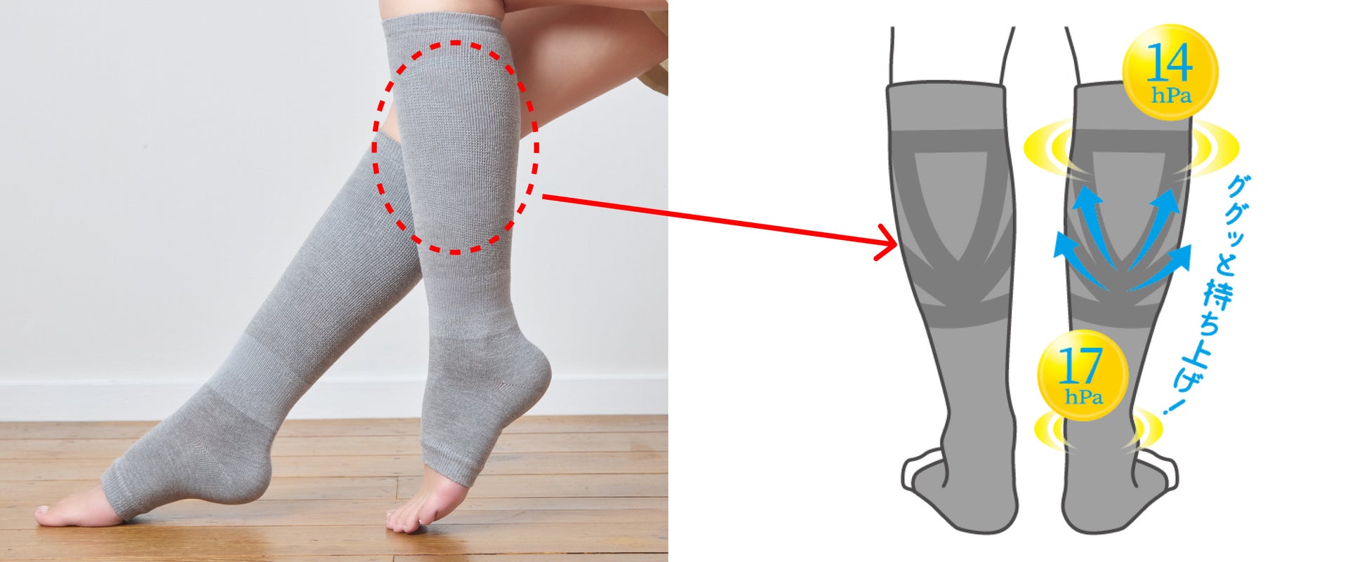 ・ほどよく脚を引き締める、独自の段階着圧設計