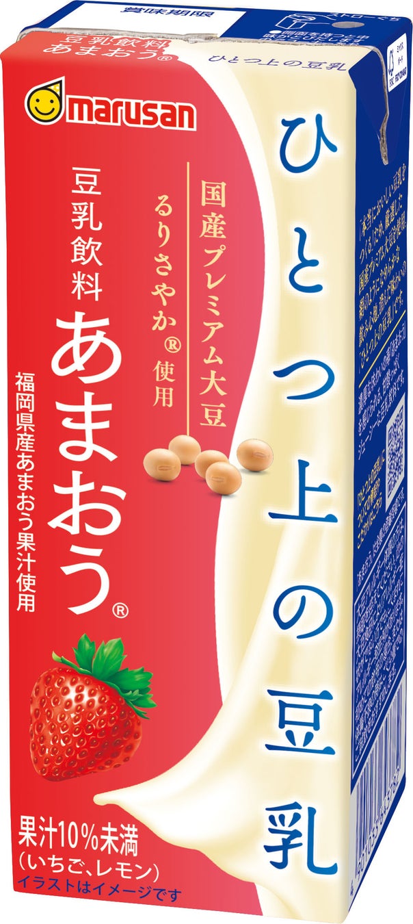 「ひとつ上の豆乳 豆乳飲料 あまおう® 200ml」は2023年3月に発売し、あまおう®ならではの甘酸っぱいフレッシュな味わいで大変ご好評いただきました。販売を終了した同年9月以降、お客様から再販のご要望を多数いただいたことから、再発売する運びとなりました。