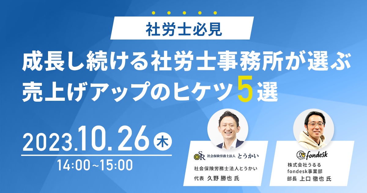 電話代行サービス「fondesk」、10月26日開催オンラインセミナー『成長し続ける社労士事務所が選ぶ売上げアップのヒケツ5選』を開催!