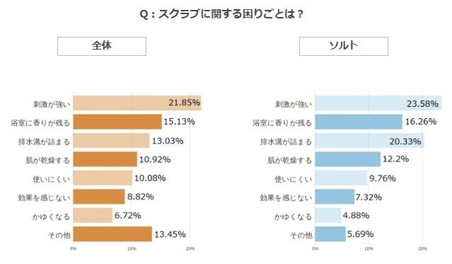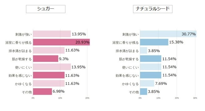 ソルトタイプでは排水溝が詰まるという回答の割合も高く見られましたが、やはりソルトタイプは粒子が粗めですので、こういった問題も出てくるものと考えられます。