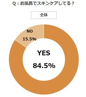 年代別に見てみても大きな開きはなく、どの年代でも8割方はお風呂でのスキンケアはしているようです。ただ、年代の高い50代以上の方が94%、若干他の年代よりも高い割合となっています。