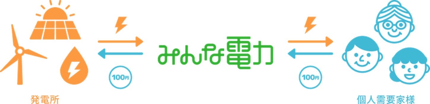 みんな電力は「顔の見える再生可能エネルギー100%※」。コンセントの向こう側にいる再生可能エネルギーの電気の生産者の顔や想いといったストーリーを見える化し、電気を選択する楽しさやワクワクを生み出しています。