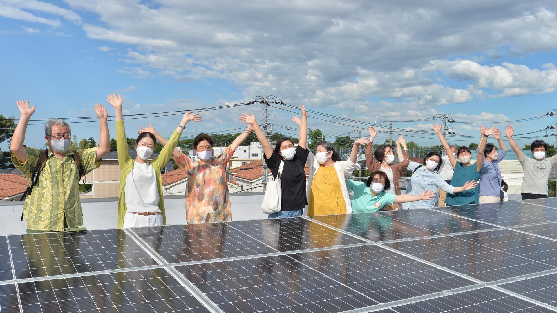 柏市増尾の障がい者生活介護施設「ザザビー・ドゥ」の陸屋根に、375Wのパネルを40枚設置しています。オンサイトPPAで、自家消費分は施設に割安で販売し、余剰は売電しています。パネルオーナー制度を活用し、30人の市民が1~2枚ずつパネルを所有しています。