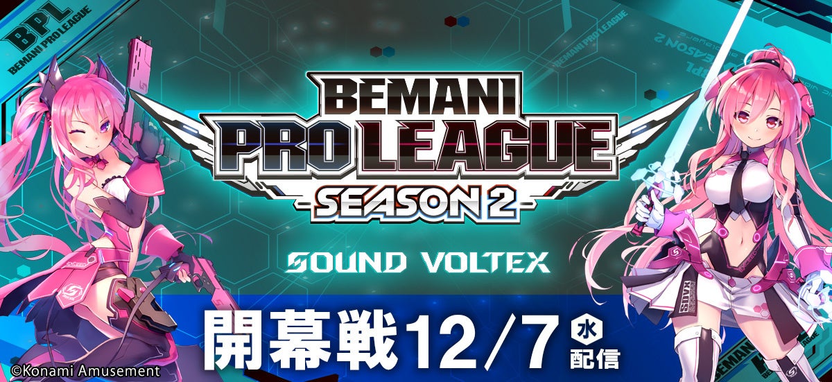 株式会社コナミアミューズメントは、音楽ゲームのesports大会「BEMANI PRO LEAGUE -SEASON 2- (ビーマニ プロ リーグ シーズンツー)」において、2機種目となる「BEMANI PRO LEAGUE -SEASON 2- SOUND VOLTEX (サウンドボルテックス)」の配信を12月7日(水)から開始することをお知らせします。