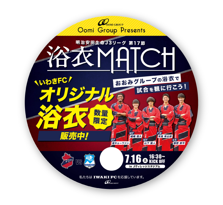 この試合に向けておおみグループと共同制作したいわきFCのオリジナル浴衣を数量限定販売いたします。今年の夏祭りはぜひいわきFCのオリジナル浴衣を着て、試合観戦をお楽しみください!