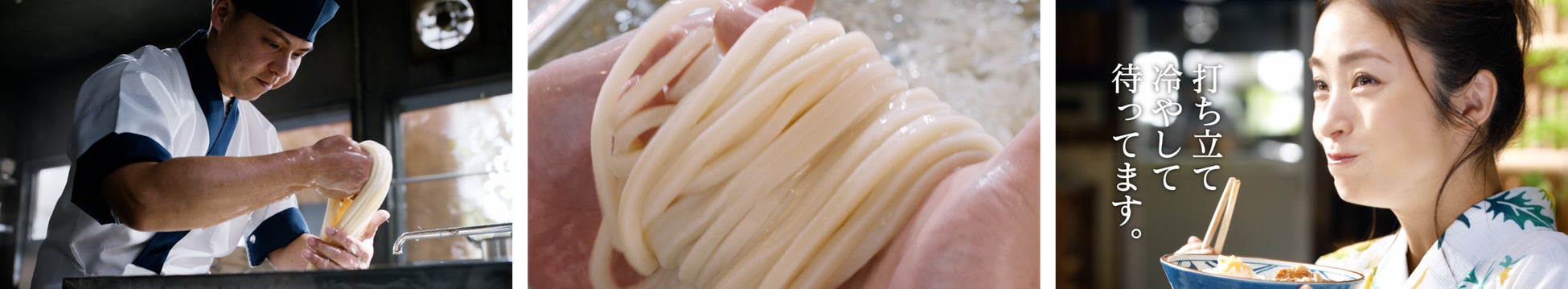 またこの季節が来たなって感じです。3回も同じ商品のTVCMを撮れて、同じ味を味わえるっていうのは、大人気だからこそなんだなって、つくづく感じています。今回のTVCMでいただいた『鬼おろし肉ぶっかけうどん』ですが、夏につるっと冷たいものを求める方にぴったりな商品だなと思っています。麺職人が全店に誕生※してから初めての夏となるので、おいしくなったおうどんをコシがある“冷”で食べるのが楽しみです。