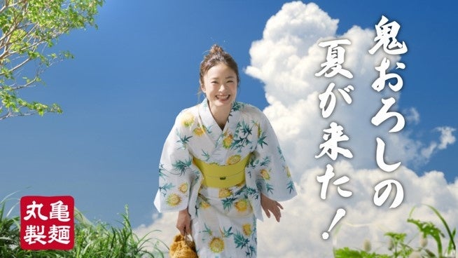 浴衣姿の上戸 彩さんが打ち立ての冷うどんを食べて涼やかな表情 丸亀製麺の定番!“鬼おろし”の夏が来た!焼きたての牛肉と鬼おろしが食欲そそる『鬼おろし肉ぶっかけうどん』新TVCMが公開