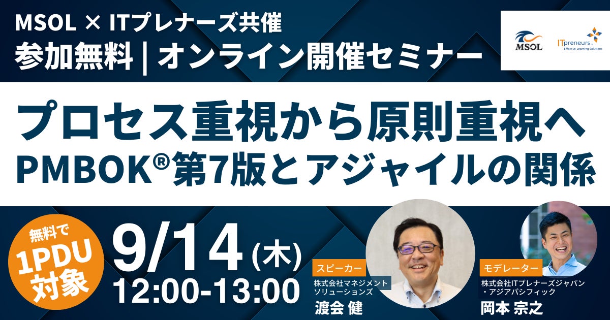 【ITプレナーズとMSOLが共催!1PDU対象の無料セミナー】プロセス重視から原則重視へ
